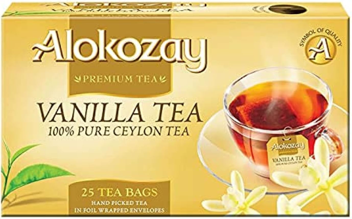 Alokozay Vanilla Tea, 25 Tea Bags, Flavoured tea,100% Pure Ceylon Tea (Pack of 24)