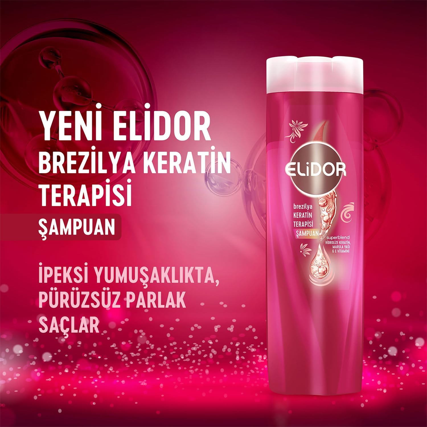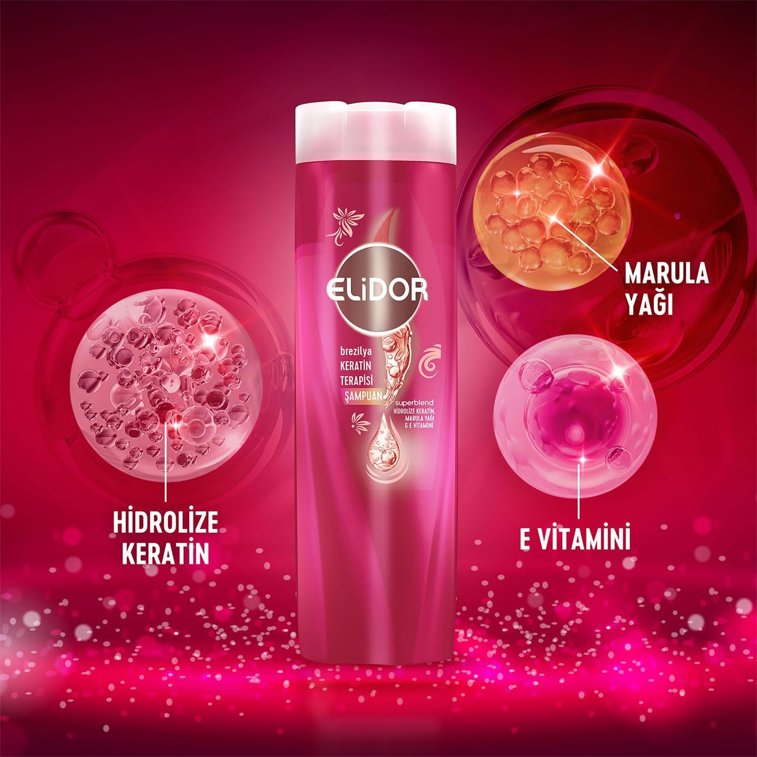 - 1 / Elidor Hair Care Shampoo Brazilian Keratin Therapy Hydrolyzed Keratin Marula Oil Vitamin E 400 ml