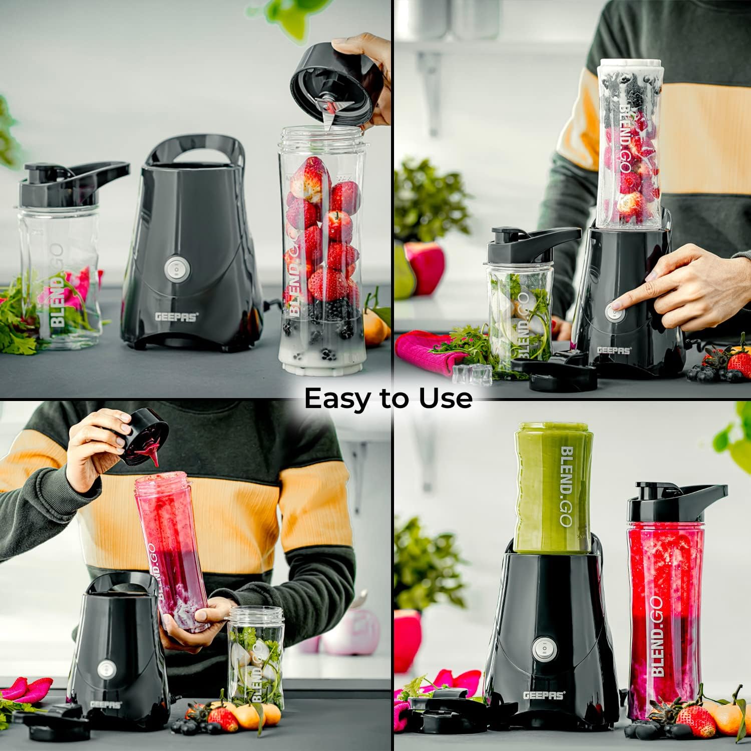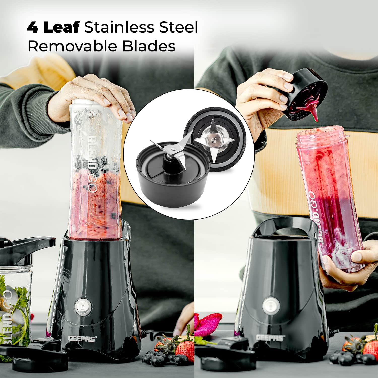 Geepas GSB44075 300W Personal Blender – Stainless Steel Blades, On/Off Control | 570 & 400 ML BPA-Free Bottles with Carry Hook | Safety Lock | Ideal for Juice, Milk Shake, Puree & More